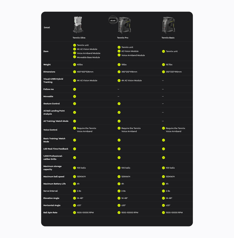 Tenniix is your true training partner. Combined with AI chip, vision-based hybrid tracking, and voice control, it doesn’t just see your movements and position — it hears your commands, thinks in real time, and adjusts every serve based on your NTRP level and training intent. No more fixed or random shots! It becomes your ultimate tennis coach and 24/7 practice partner.